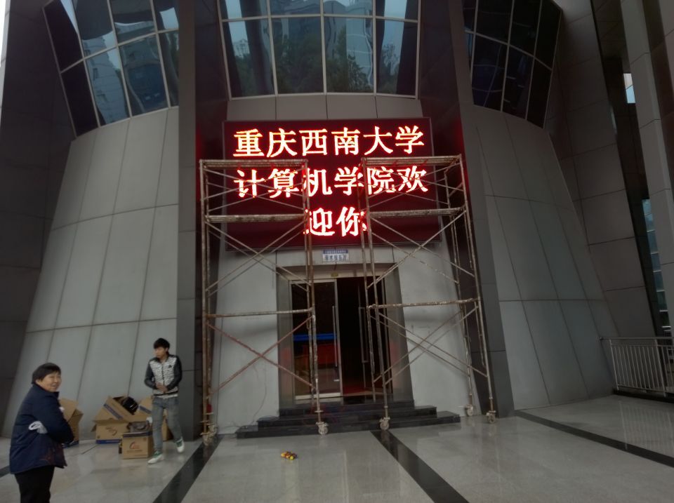 这次西南大学北北校区的P10户外单红显示屏,安于校区学术报告厅门头之上,P10户外单红应用范围非常广泛。能让前来学术报告厅的同学老师们眼前一亮,能简单明了的看到会议项目。